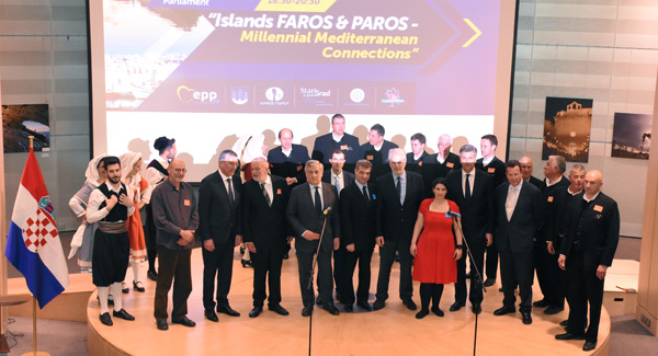 Obljetnica u EP-u uveličana je izložbom fotografija s otoka Hvara i Parosa, na kojoj se uzvanicima obratio povjerenik u Komisiji Christos Stylianides i prvi potpredsjednik Europskog parlamenta Antonio Tajani. Oba govornika zauzela su se za očuvanje vrijedne ostavštvine odnosa Farosa i Parosa, koji su ostavili prepoznatljiv trag u europskoj kulturi, kao i za usmjerenje suradnje dvaju otoka prema razvoju poduzetništva i turizma.