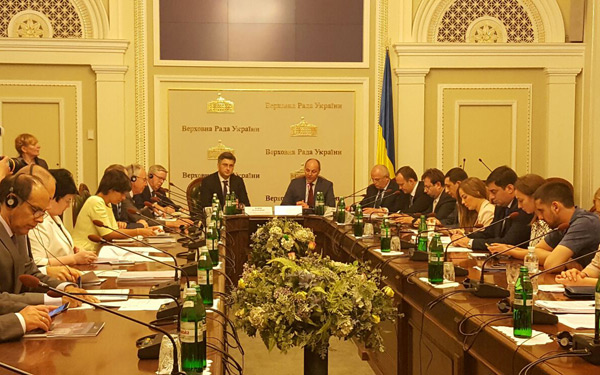 Plenković je zajedno s bivšim predsjednikom Europskog parlamenta Patom Coxom supredsjedao konferencijom održanoj u Vrhovnoj Radi na temu suradnje između zakonodavne i izvršne vlasti. Svrha seminara bila je poboljšanje odnosa između vlade i parlamenta s ciljem jačanja zakonodavnog procesa, političkog nadzora izvršne vlasti, otvorenosti i transparentnost rada, usklađivanja zakonodavstva s pravnom stečevinom EU te usvajanje etičkog kodeksa.