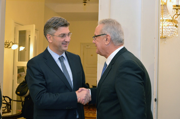 Premijer Andrej Plenković sastao se u Banskim dvorima s povjerenikom Europske komisije za međunarodnu suradnju i razvoj Nevenom Mimicom
