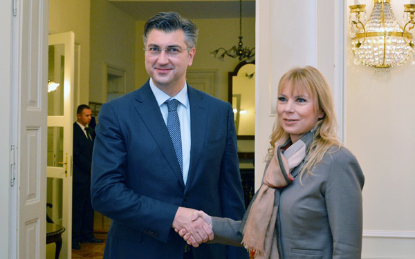 Predsjednik Vlade Plenković sastao se s europskom povjerenicom za unutarnje tržište, industriju, poduzetništvo i mala i srednja poduzeća Elżbietom Bieńkowskom. Uz premijera bila je potpredsjednica Vlade Martina Dalić.