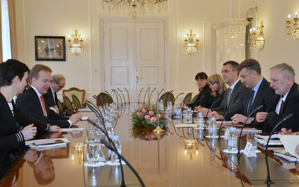 Premijer Plenković izrazio je zadovoljstvo bilateralnim političkim odnosima između dviju zemalja, kao i njihovom suradnjom u Sjevernoatlantskom savezu, dodavši da će se 20. veljače navršiti 25. godina od uspostavljanja diplomatskih odnosa između Republike Hrvatske i Kraljevine Norveške.