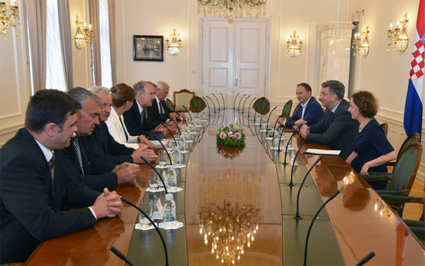 Predsjednik Vlade Andrej Plenković primio je izaslanstvo Viteškog alkarskog društva Sinj predvođeno njegovim predsjednikom Stipom Jukićem