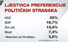Prema redovitom istraživanju CRO Demoskop HDZ u srpnju bilježi potporu od 25 posto, dok SDP-ov rejting iznosi 18,7 posto