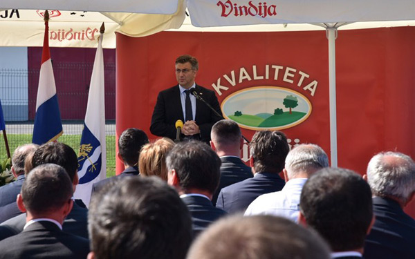 „Naravno da situacija nije u stopostotnom smislu idealna, ali važno je da nam otpornost koju ste pokazali, snaga gotovo 5.000 ljudi koji rade u okviru grupe Vindija, dugogodišnja kvaliteta, ulaganje u inovacije, proizvodnju i visoke standarde higijene daju veliki optimizam da koncept politike „od polja do stola“ – sigurno, brzo, zdravo, hrvatsko, funkcionira i na ovom primjeru. Drago mi je da se ovo otvaranje događa na dan kad ćemo u Vinkovcima imati 5. Savjet za Slavoniju, Baranju i Srijem, gdje ćemo potpisati stotinjak ugovora s izrazito velikim sredstvima na raznim područjima, od poljoprivrede i demografskih aspekata, zapošljavanja, gospodarstva i prometne infrastrukture“.