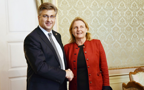 Premijer Plenković primio je austrijsku saveznu ministricu za Europu, integraciju i vanjske poslove Karin Kneissl