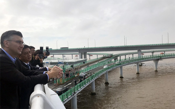 Plenković je most Hangzhou Bay obišao u pratnji predsjednika uprave CRBC-a Lua Shana, koji je hrvatskim novinarima dan ranije rekao da je projekt Pelješkog mosta "vrlo važan za CRBC".