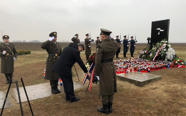 Predsjednica Kolinda Grabar Kitarović, predsjednik Hrvatskog sabora Gordan Jandroković i predsjednik Vlade Andrej Plenković položili su zajednički vijenac i zapalili svijeće na Memorijalnom groblju žrtava iz Domovinskog rata u Vukovaru, odajući počast svim stradalima i nestalima u obrani Vukovara.