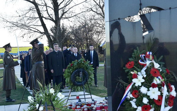 Potom je predsjednik Vlade Andrej Plenković, zajedno s članovima Vlade, na Spomen obilježju na mjestu masovne grobnice na Ovčari položio vijenac i zapalio svijeću.