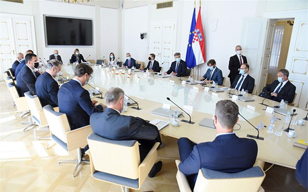 Uz predsjednika Vlade bili su potpredsjednik Vlade i ministar financija Zdravko Marić i ministar gospodarstva i održivog razvoja Tomislav Ćorić, a u sastanku je sudjelovao i guverner Hrvatske narodne banke Boris Vujčić.