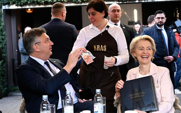 Po svršetku svečanosti na Bregani premijer Plenković i predsjednica Komisije von der Leyen sastali su se u Banskim dvorima. Potom su popili kavu u centru Zagreba, koju su platili u eurima, čime je simbolično obilježeno članstvo Hrvatske u europodručju.