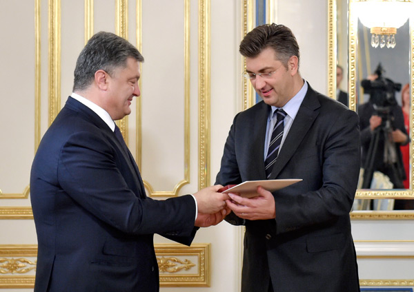 Plenković je ponovio da EU podupire napore za mirnu reintegraciju okupiranih područja Donbasa i ilegalno anketiranog Krima, kao i provedbu Sporazuma iz Minska. Izrazio je očekivanje da će se nakon lokalnih izbora nastaviti ustavne reforme i proces decentralizacije. Založio se za usvajanje paketa zakona koje Vrhovna Rada treba donijeti kako bi se ispunili preduvjeti za liberalizaciju viznog režima s EU-om. Dodao je kako očekuje da će Sporazum o slobodnoj trgovini stupiti na snagu 1. siječnja 2016. Podržao je nastavak provedbe Europske reformske agende te daljnje jačanje institucionalnih kapaciteta Vrhovne Rade u europskim poslovima.
