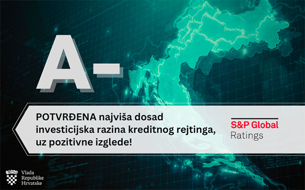Rejting agencija Standard & Poor's (S&P) potvrdila je kreditni rejting Hrvatske na razini »A-« za dugoročne i »A-2« za kratkoročne obveze, uz pozitivne izglede