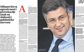U intervjuu za Večernji list Andrej Plenković govori o transformaciji HDZ-a u kratkom roku te o svojoj afirmativnoj i programskoj kampanji, za razliku od agresivne retorike predsjednika SDP-a koji nedostatak vizije nadomješta konfliktom