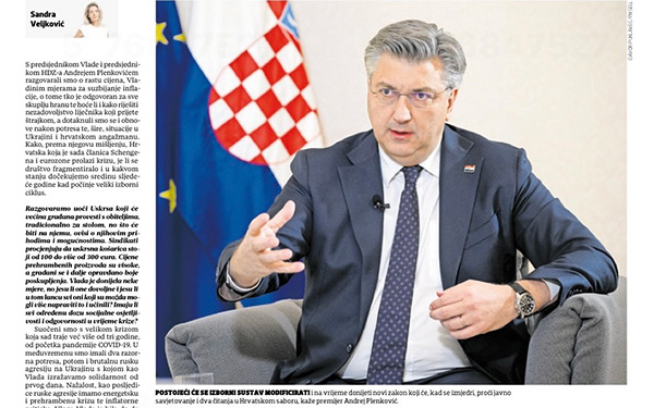 Predsjednik Vlade Andrej Plenković dao je intervju glasilu Atlantskog vijeća »Front Page« o ratu u Ukrajini, vanjskopolitičkim ciljevima Hrvatske i njezinoj ulozi uzora za zemlje zapadnog Balkana