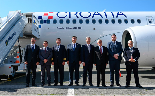 Predsjednik Vlade Andrej Plenković sudjelovao je u svečanom dočeku prvoga novog zrakoplova tipa Airbus A220-300 "Zagreb" u Zračnoj luci Franjo Tuđman