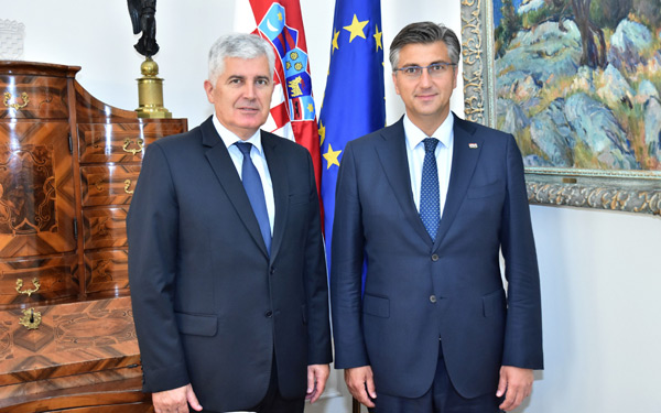 Predsjednik Vlade Andrej Plenković primio je predsjednika Hrvatskoga narodnog sabora BiH Dragana Čovića