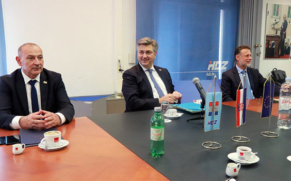Predsjednik Vlade Andrej Plenković razgovarao je s predsjednikom Demokratskog saveza Hrvata u Vojvodini Tomislavom Žigmanovom i kandidatkinjom za hrvatsku članicu predsjedništva BiH Borjanom Krišto