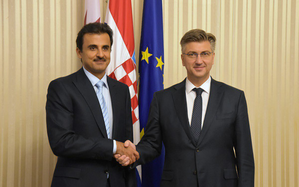 Predsjednik Vlade Andrej Plenković primio je katarskig emira, šeika Tamima bin Hamada bin Khalifu Al Thanija, koji boravi u službenom posjetu Hrvatskoj