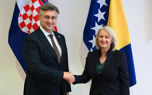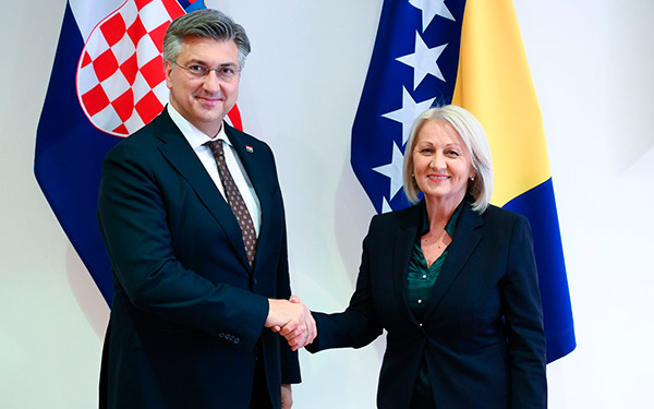 Premijer Andrej Plenković i predsjedateljica Vijeća ministara Bojana Krišto potvrdili su dobre i prijateljske odnose Hrvatske i Bosne i Hercegovine, a Plenković je pritom istaknuo potporu europskom putu BiH