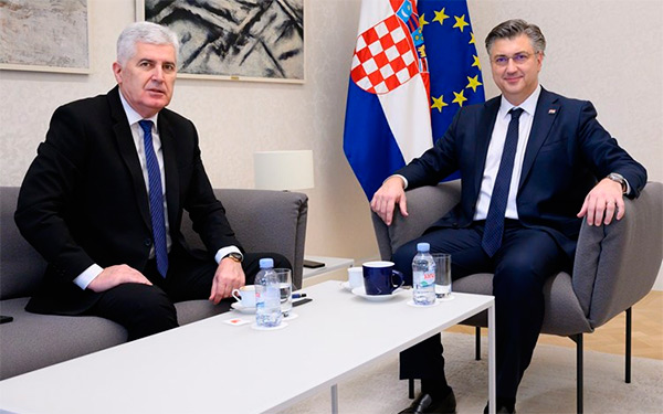 Predsjednik Vlade Andrej Plenković sastao se s Draganom Čovićem, predsjednikom Hrvatskog narodnog sabora Bosne i Hercegovine i prvim zamjenikom predsjedavajućeg Doma naroda Parlamentarne skupštine BiH
