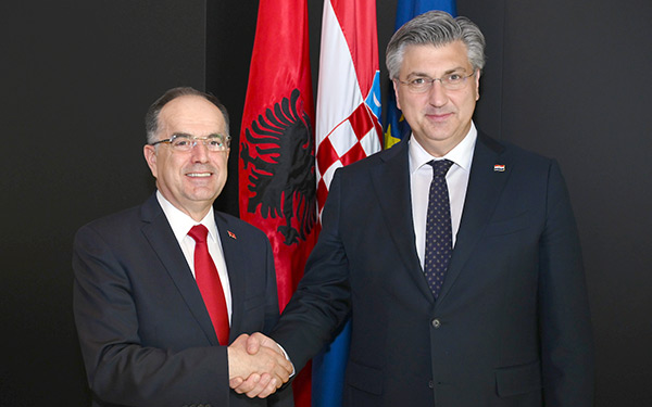 Predsjednik Vlade Andrej Plenković primio je albanskog predsjednika Bajrama Begaja, koji boravi u službenom posjetu Hrvatskoj