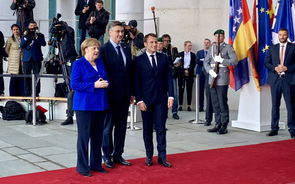 Predsjednik Vlade Andrej Plenković primio je njemačku kancelarku Angelu Merkel, s kojom je razgovarao o prioritetima hrvatskog predsjedanja Vijećem EU-a, ambicijama Hrvatske za ulazak u Schengen i europodručje te o proširenju Unije