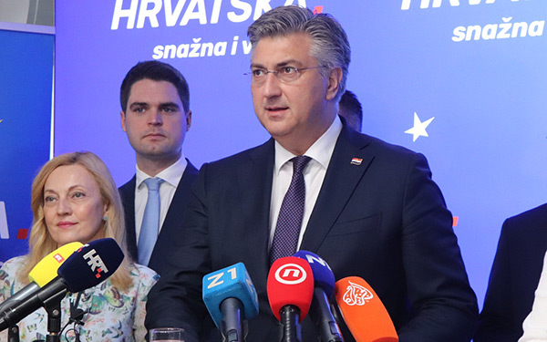 Nakon objave prvih neslužbenih rezultata europskih izbora, predsjednik HDZ-a i Vlade Andrej Plenković obratio se stranačkim kolegamau HDZ-ovu stožeru