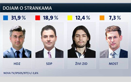 Prema istraživanju »Crobarometar« u prosincu je HDZ uvjerljivo vodeća stranka, koju podržava 31,9% građana, a SDP je drugi s 18,9% potpore