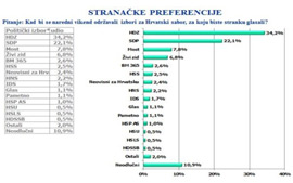 Prema CRO Demoskopu u kolovozu je HDZ zadržao poziciju uvjerljivo vodeće hrvatske stranke s potporom od 34,2% građana, dok je SDP-ov rejting na 22,1%
