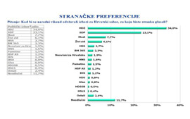 Prema srpanjskom istraživanju »Crobarometar« HDZ je zadržao poziciju vodeće stranke uz potporu 33,6% građana, dok ih je 22,4% izabralo SDP. U blagom je porastu i društveni optimizam.