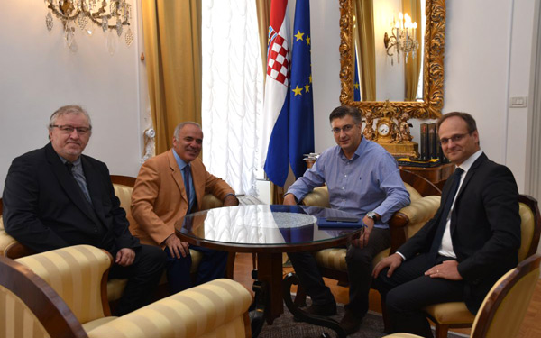 Predsjednik Vlade Andrej Plenković primio je u Banskim Dvorima Garija Kasparova, bivšega svjetskog prvaka, jednog od najboljih šahista svih vremena i velikog prijatelja Hrvatske