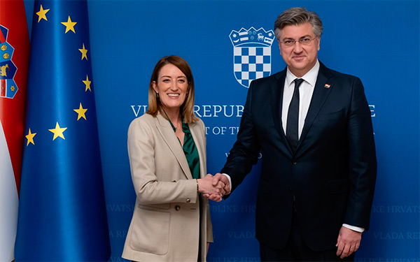 Predsjednik Vlade Andrej Plenković primio je predsjednicu Europskog parlamenta Robertu Metsola, s kojom je razgovarao o aktualnim temama u Europskom parlamentu