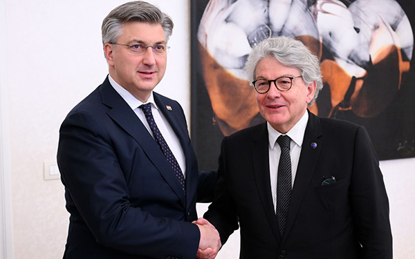 Predsjednik Vlade Andrej Plenković primio je povjerenika Europske komisije za unutarnje tržište Thierryja Bretona