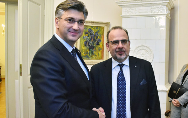 Predsjednik Vlade Plenković primio je u Banskim dvorima predsjednika Europskog gospodarskog i socijalnog odbora (EGSO) Lucu Jahiera