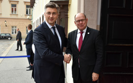 Predsjednik Vlade Republike Hrvatske Andrej Plenković primio je danas predsjednika Parlamenta Kraljevine Švedske Urbana Ahlina