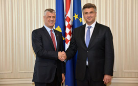 Predsjednik Vlade Plenković primio je posjet predsjednika Republike Kosova Hashima Thaçija te je s njim razgovarao o političkim i gospodarskim odnosima dviju zemalja