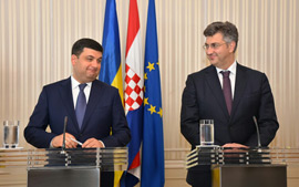 Predsjednik Vlade Andrej Plenković sudjelovao je na Hrvatsko-ukrajinskom gospodarskom forumu, koji se u sklopu posjeta predsjednika Vlade Ukrajine Volodimira Grojsmana održao u Zagrebu
