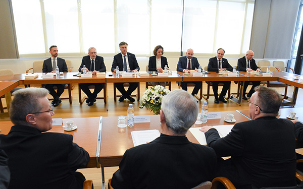 Premijer Andrej Plenković i članovi Vlade održali su redovit polugodišnji sastanak s članovima Stalnog vijeća HBK-a, kojim predsjeda mons. Želimir Puljić