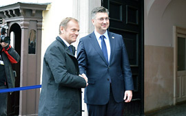 Predsjednik Vlade Plenković sastao se s predsjednikom Europskog vijeća Donaldom Tuskom, koji u Zagrebu boravi na poziv premijera Plenkovića u povodu obilježavanja 25. obljetnice međunarodnog priznanja Republike Hrvatske