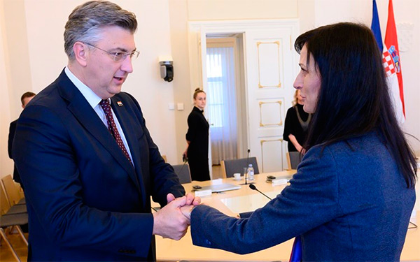 Predsjednik Vlade Andrej Plenković primio je Mariju Gabriel, zamjenicu predsjednika Vlade i ministricu vanjskih poslova Bugarske, koja boravi u posjetu Hrvatskoj