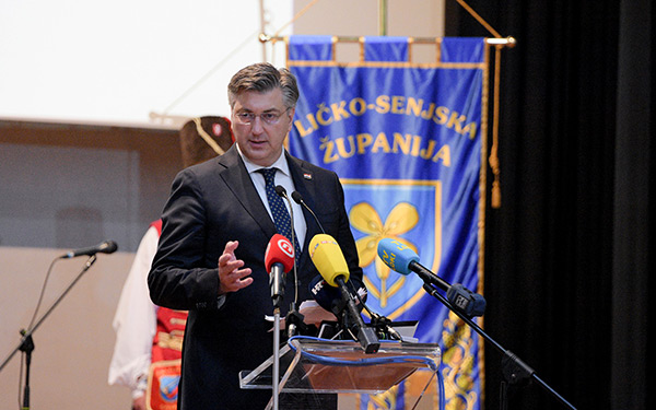 Predsjedniku Vlade Andreju Plenkoviću uručena je u Gospiću povelja počasnog građanina Ličko-senjske županije