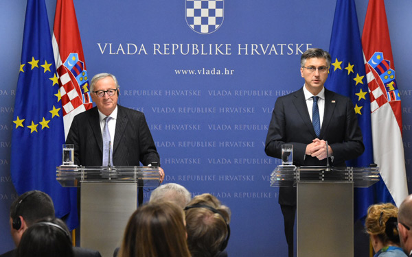 Predsjednik Vlade Andrej Plenković primio je predsjednika Europske komisije Jean-Claudea Junckera, koji boravi u službenom posjetu Hrvatskoj